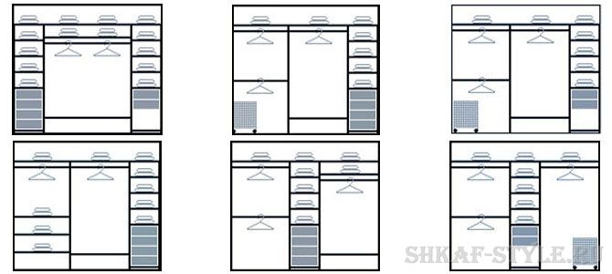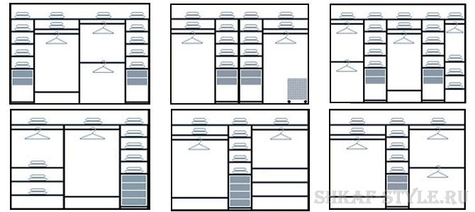 Существует большое разнообразие внутренних компонентов шкафа-купе, и для того, чтобы выбрать необходимое, следует определиться с некоторыми позициями.
