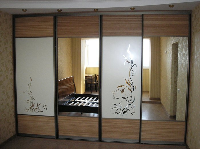 Основным элементом декора, задающим настроение всему помещению, конечно, является фасад шкафа. Его делают из стекла или ламинированных ДСП панелей. В ход идут также зеркальные поверхности с пескоструйным рисунком, экзотичное ротанговое или бамбуковое плетение, роскошная искусственная кожа, фотопечать и удивительные по красоте сочетания разных деталей.